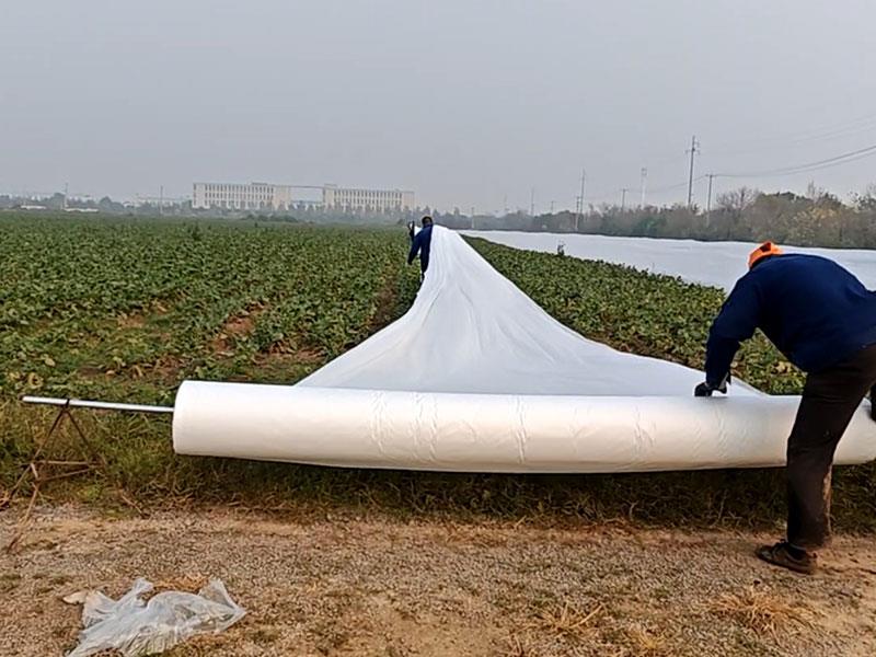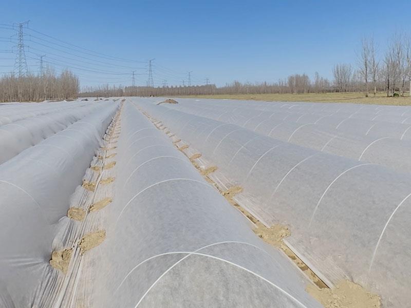 覆盖方式:平铺畦面或支架上,边缘用土块/地钉/筷子固定;高秆作物需搭拱棚,避免布料贴叶,为农作物留够充足生长空间。